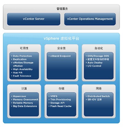 VMware® vSphere® 专为需要虚拟化整个数据中心并实现“IT 即服务”的组织而设计,包含众多可将数据中心转变为可提供灵活可靠的新一代 IT 服务的极为简化的云计算环境的功能。