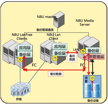 客户业务系统数据较多,业务系统运行的平台比较丰富,数据量增长迅速;Symanetc 公司是全球领先的数据安全厂商,NetBackup备份软件是业界功能全面、支持平台较多、稳定高效等特性。项目前期裕文科技对客户业务系统进行了评估和分析,结合现有的使用环境,规划和实施了Symantec NetBackup 数据备份解决方案;Symantec NetBackup 优化备份架构如下图所示:
